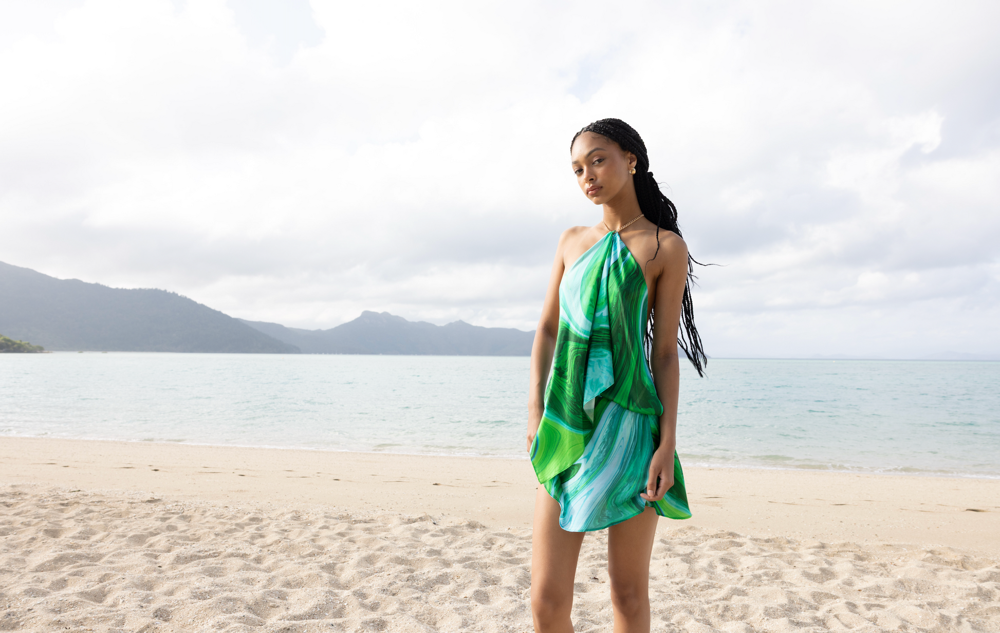 The Azure chain top showcases one of our custom prints designed for our exclusive capsule collection in partnership with Hayman Island.